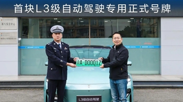 重庆发布国内首块L3级自动驾驶专用正式号牌...